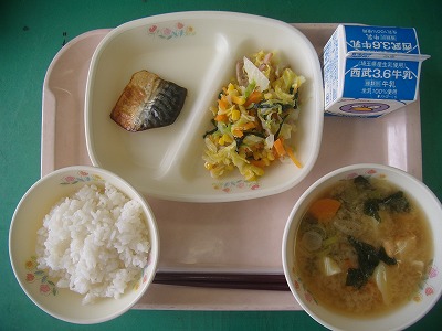 5月18日(木)の給食☆本日の献立☆ ご飯、サバのサラサ焼き、キャベツのペペロンチーノ、野菜椀 「更紗(さらさ)はインドネシアなどで作られている織物の名前です。カレー味をつけるときに更紗の文字がはいります。」とネットのレシピにはあります。今日のは、カレー風味は少なかったようです。色々な料理方法、名前があるのですね。 |