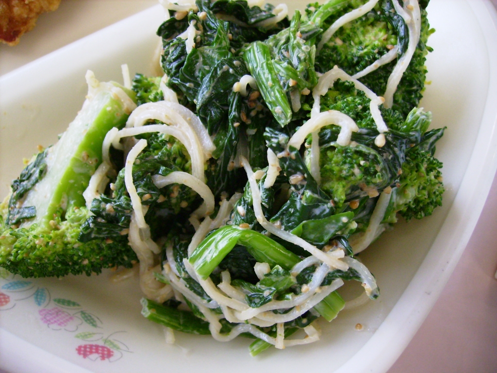 ごまマヨネーズ和えは、ブロッコリーとほうれん草が