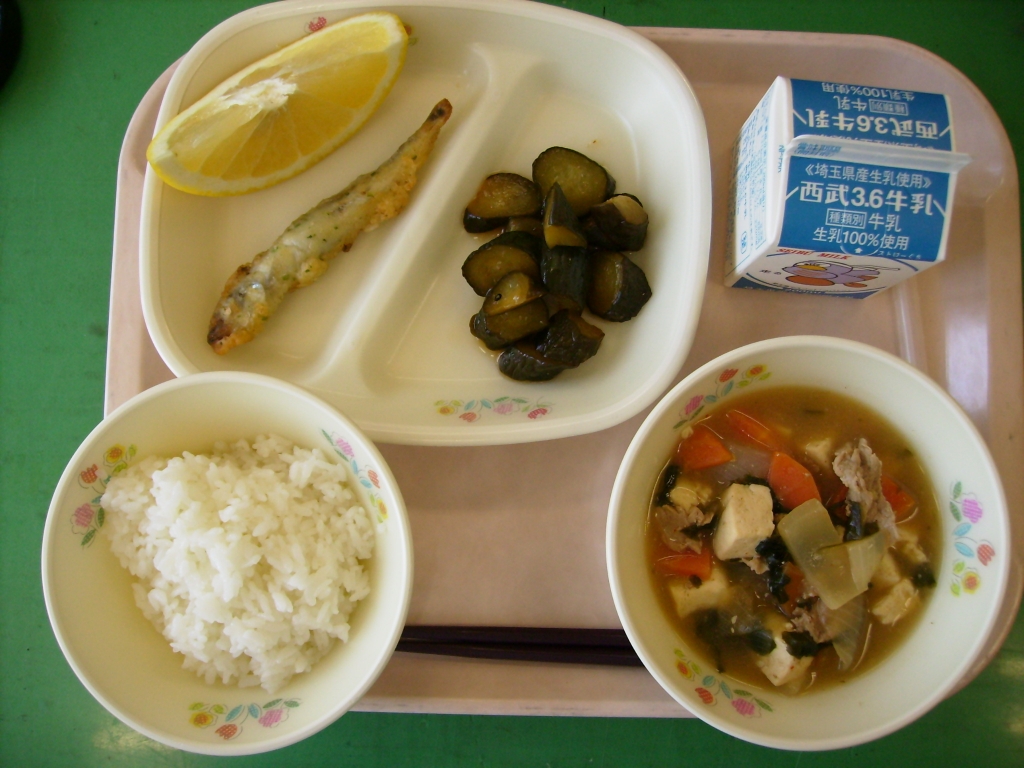 今日の献立 牛乳、ごはん、肉豆腐 ししゃもフリッター、きゅうりのピリッと漬け グレープフルーツ 今日は、肉豆腐が人気でした。 いつものみそ汁と同じくらいの出来上がりでしたが、 どのクラスも残りはありませんでした。