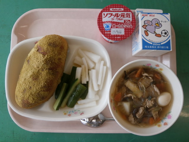 牛乳 抹茶入りきなこ揚げパン スティック野菜 タイピーエン ヨーグルト