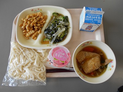 (メニュー) きつねうどん 大豆とポテト揚げ ジャコ入り海藻サラダ 桃ゼリー 牛乳 (食レポ) きつねうどんと呼ばれるのには諸説がありますが、 油揚げがきつねの好物とされていることから名付けられた というのが一般的でしょうか。 でも、たぬきうどんは、動物のたぬきとは関係ないようです。 |