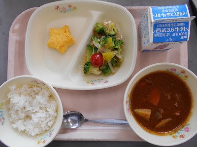 (メニュー) ハヤシライス カラフルサラダ 星オムレツ 牛乳 (食レポ) カラフルサラダはパプリカやミニトマトがさわやかな感じがします。 来週は6月に入ります。衛生管理に一層気をつけます。 |