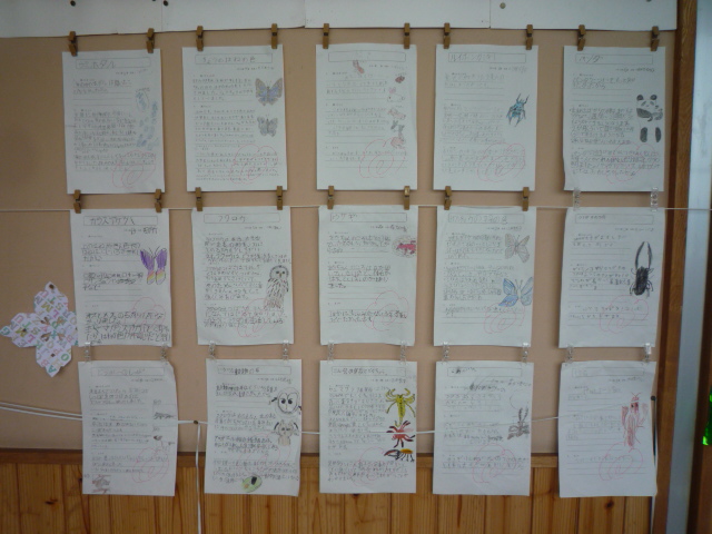 生き物の体のつくりや体の不思議をまとめました。 「犬とねこのしっぽの役割」や「ちょうのはねの色」「カミキリムシ」を調べたお友達もいました。 犬やねこは、しっぽで感情がわかりますが、ねこのしっぽにはバランスをとる役目もあるそうです。 |