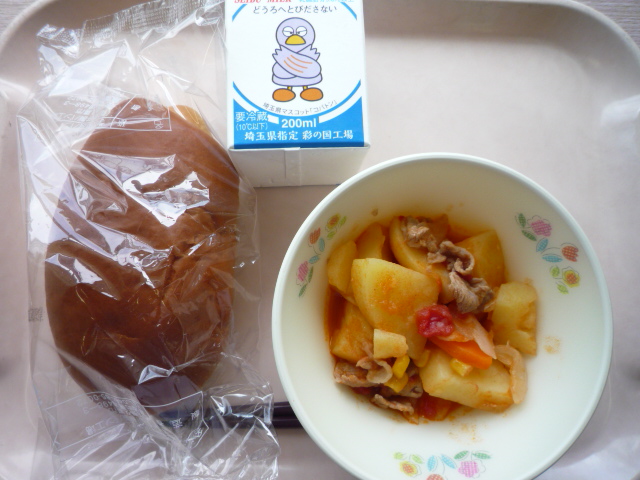 今日から主食が増えて二品になりました。 肉じゃがはとってもおいしくて、児童のみなさん に人気がありました。明日も楽しみです。 |