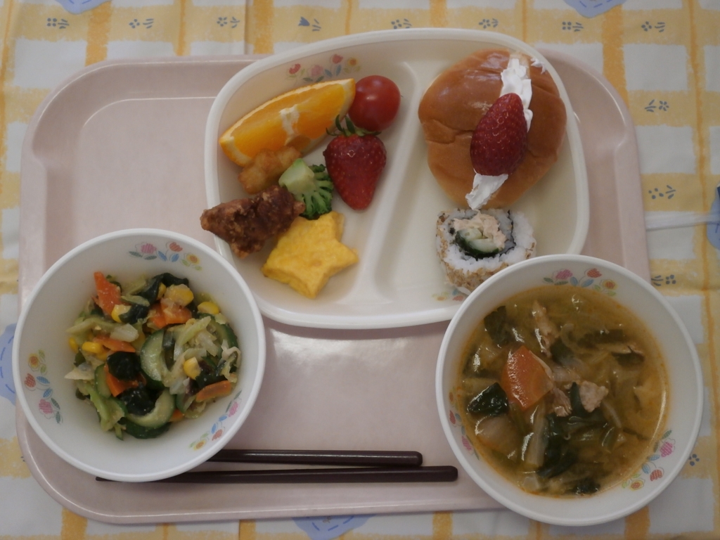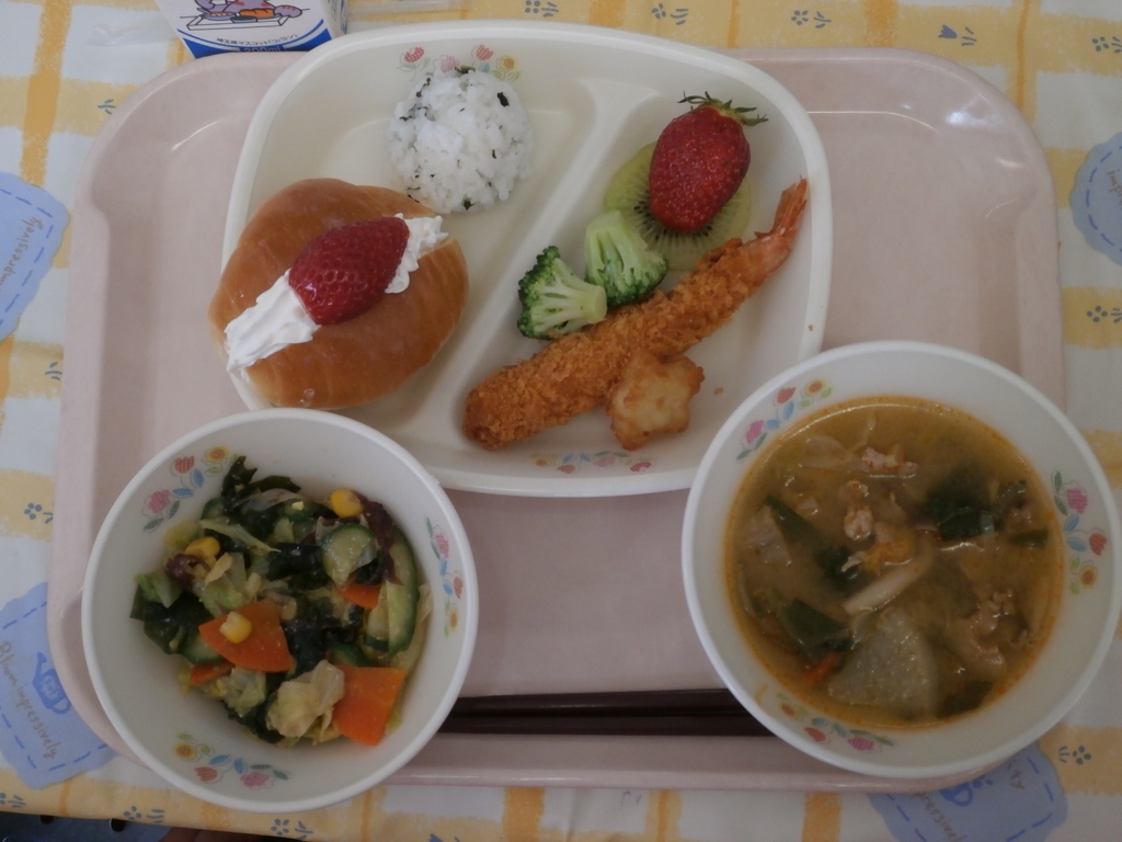 ☆今日の献立☆ 牛乳、ごはん、鶏のからあげ、 海草サラダ、豚キムチスープ でした。 写真を撮るのを忘れてしまいました。