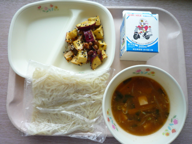 麻婆ラーメン・サツマイモと大豆のゴマ絡め