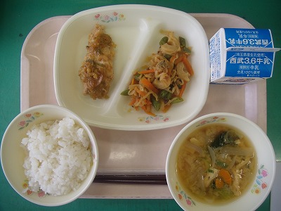 5月17日(水)の給食☆本日の献立☆ ご飯、韓国風鳥の照り焼き、切り干し大根の炒り煮、玉ねぎのみそ汁 暑かったり、涼しかったり…天候が安定しませんね。今日のようなちょっと肌寒い日は、温かいみそ汁がありがたいです。甘い玉ねぎがたっぷり入っています。 |