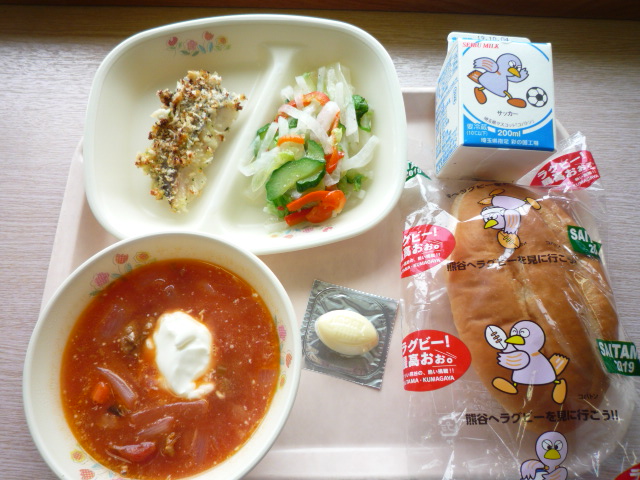 (献立) ボルシチ ホキの香草焼き いろどりサラダ