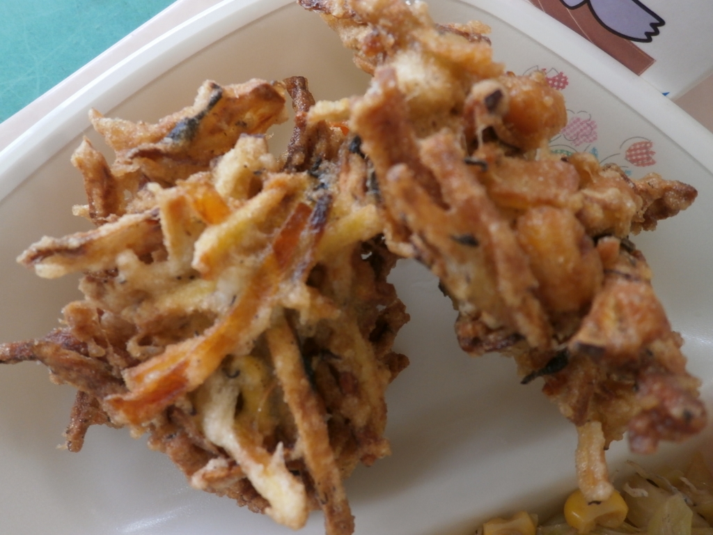 今日は、深谷ねぎをたっぷり使った「ねぎまうどん」でした。 かみかみかき揚げは、するめ、さつまいも、ごぼう、 にんじん、大豆、玉ねぎ、ひじきをかき揚げにしました。
