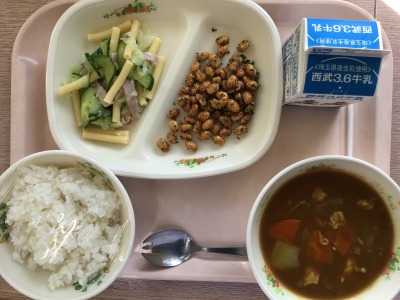 今日の給食では、大好きなきな粉揚げパンに子供たちは大喜びでした。