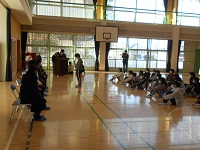 全校朝会、社会体験チャレンジ