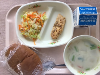 今日の給食では、大好きなきな粉揚げパンに子供たちは大喜びでした。