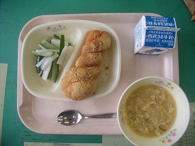 9月18日(火)の給食☆本日の献立☆ きなこあげパン、スティック野菜、ガタタン 子どもたちに人気のきなこあげパンがでました。食べ方が難しいのですが、上手に食べられるようになったでしょうか?1年生は。 |