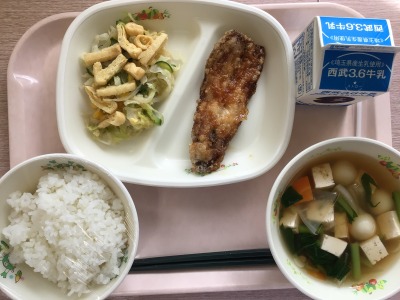 今日の給食では、大好きなきな粉揚げパンに子供たちは大喜びでした。
