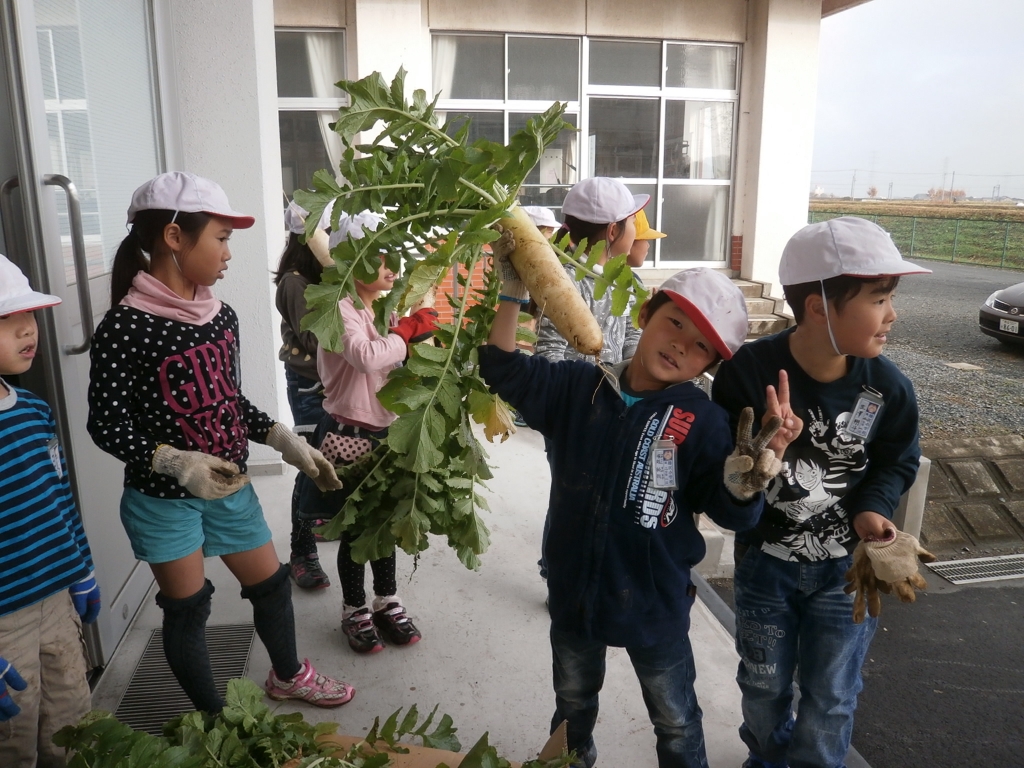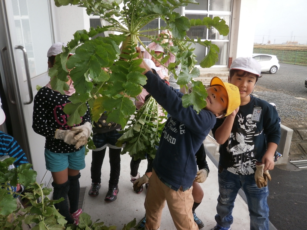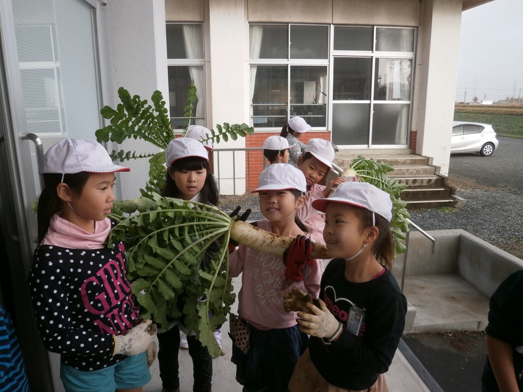 今月は地産地消推進月間なので、学校の畑で2年生とはんのき学級の野菜を