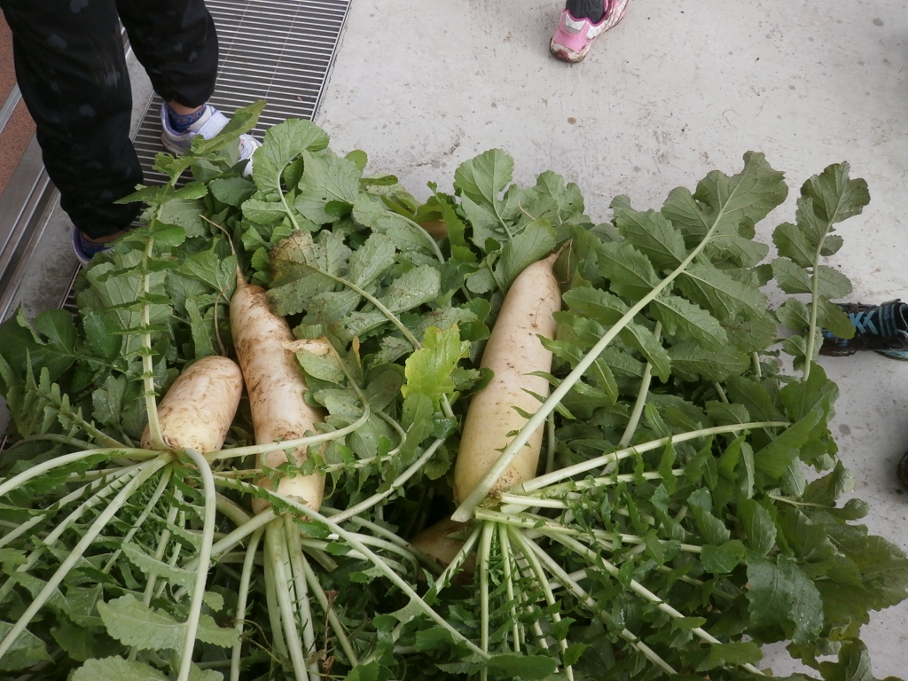 立派な大根がたくさん届きました。葉っぱも立派です。