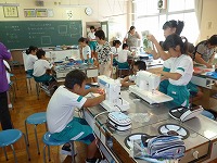 今日はミシンを使ってランチョンマットを作りました。5名の学校応援団の方に、丁寧に教えていただけました。
