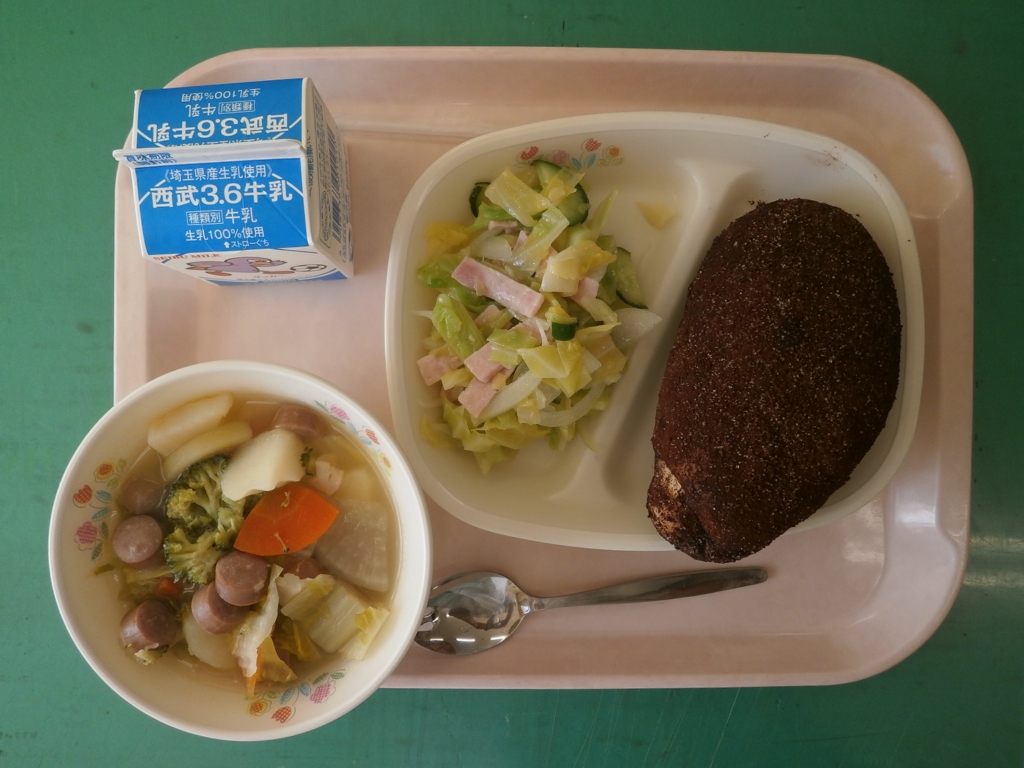 今日はどのクラスも残りなしでよく食べました。 ココア揚げパンは、また出して下さいとリクエストされました。 サラダも、さっぱりしていておいしかったです。 ポトフも、野菜に味がしみていておいしかったです。