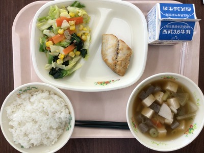 西京焼き・キャベツのペペロンチーノ風・けんちん汁