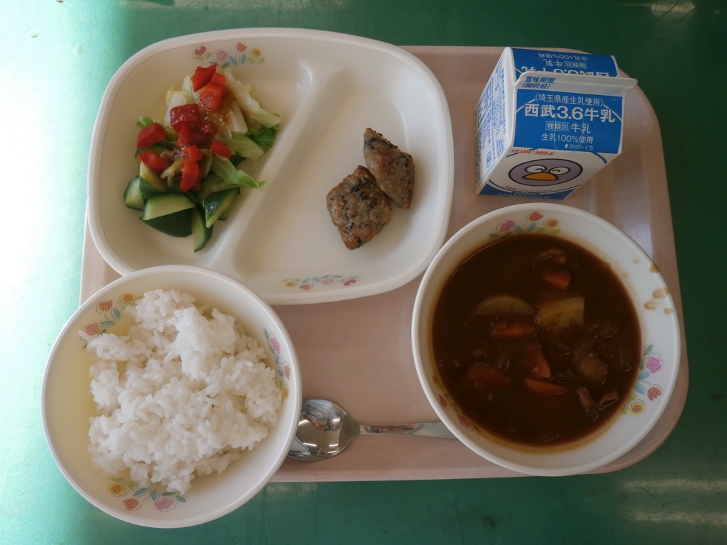 昨日に続き全校で完食です!!牛乳もごはんも残りなしです。 ハヤシライスは、ちょっぴり酸味があっておいしかったです。 この調子で、残さず食べて、風邪を引かないように!! 明日は、10月最後の給食。 ハロウィンにちなんで、カボチャをつかったメニューです。