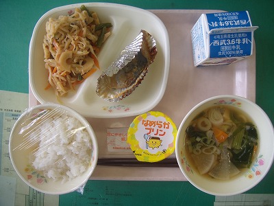 5月24日(木)の給食☆本日の献立☆ ご飯、鰆の味噌マヨネーズ焼、切り干し大根の炒り煮、吉野汁、プリン 今日は、純和風の給食です。和食が見直されている昨今、給食には積極的に和食を取り入れています。家庭でも、日々の献立を見直してみてはいかがですか?ちなみに、鰆(さわら)です。味噌マヨネーズ焼がちょっと洋風ですね。 |