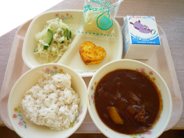 (献立) ハヤシライス ハムのマリネ ハートのオムレツ 牛乳 ラフランス (コメント) ラフランスはコンポートとしていただきました。 ラフランスは、秋のフルーツの女王と呼ばれているそうです。 甘さと香りを楽しみました。 |