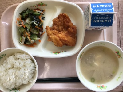 カツ丼・海藻サラダ・スタミナスープ・シューアイス