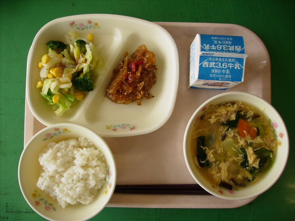 今日の献立  牛乳、ごはん、アジの南蛮漬け 温野菜、華風スープ 今日はスープが子どもたちには好評でした。 アジの南蛮漬けも、さっぱりしていておいしかったです。 サラダは冷たくて、暑い日にはうれしい1品でした。 |