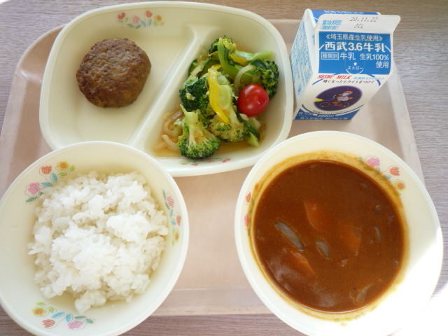 今日のサラダのブロッコリーは深谷園芸協会からいただいたものです。美味しくいただきました。みんなが大好きなハンバーグとハヤシライスです。もっともっと食べたいみたいです。