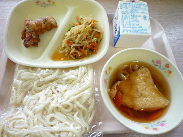 きつねうどん・竹輪の石垣揚げ・葱じゃこナムル