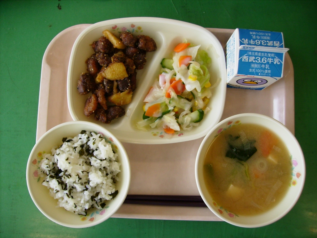 | | 2015/06/25 | 6月25日の給食~豚肉とレバーのごまだれ |  | by:栄養士 |