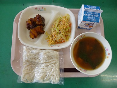 12月14日(水)の給食☆本日の献立☆ うどん、五目うどんの汁、カボチャのいとこ煮、中華サラダ カボチャのいとこは何だったのでしょう? |