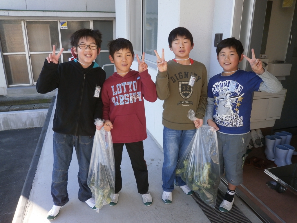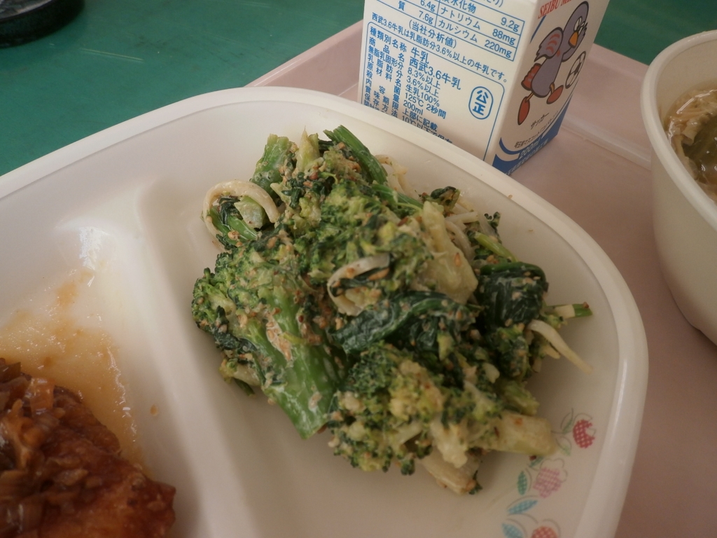 今日は、学校の畑で4年生が育てている ブロッコリーを給食に使いました。 収穫したブロッコリーを大きな袋に入れて 給食室に届けてくれました。 「ちょっと早めのブロッコリーサンタ」と言いながら調理員さんに 「お願いします」と渡してくれました。 とても大きくて、立派なブロッコリーでした。 ごまマヨネーズ和えにたっぷり使って、全校でおいしく頂きました。 |