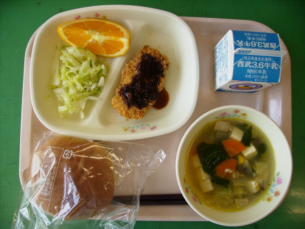 ゆでキャベツ、豆腐と野菜のコンソメスープ、オレンジ