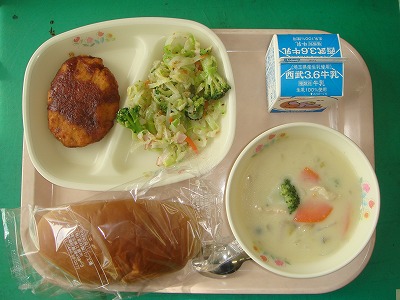 11月15日(火)の給食☆本日の献立☆ 黒パン、ゼリーフライ、セサミサラダ、秋の味覚シチュー 秋の味覚シチュー、野菜たっぷりなヘルシーシチューでした。ゼリーフライは行田名物ですが、食べたことありますか? |