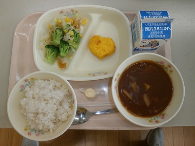 6月7日(水)の給食☆本日の献立☆ 麦ご飯、ハヤシライス、ハートのオムレツ、三色サラダ、チーズ ご家庭では、健康のために麦ご飯や玄米ご飯を食べているのでしょうか?学校では時々、麦ご飯が出ます。食べてもそれほど違和感はありません。ハヤシライスとよく合います。 |