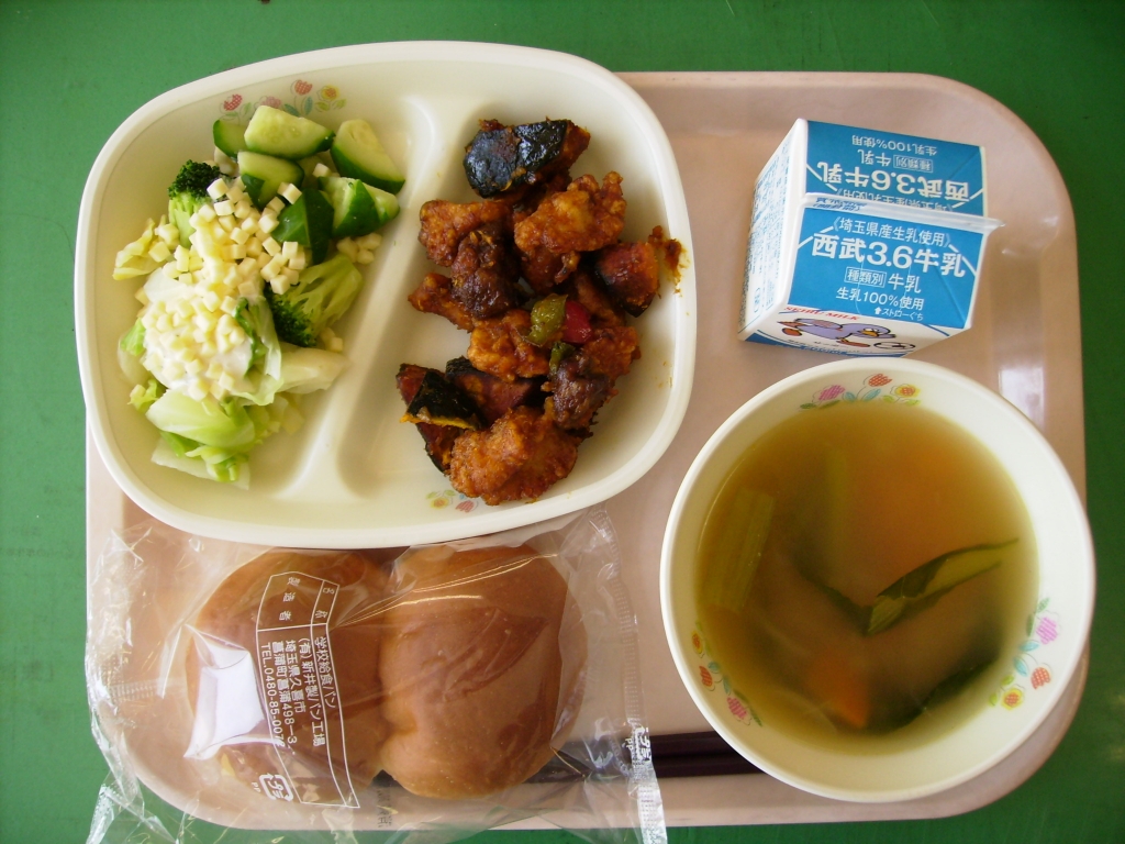 | | 2015/10/09 | 10月9日の給食~鶏肉とレバーのオレンジソース |  | by:栄養士 |