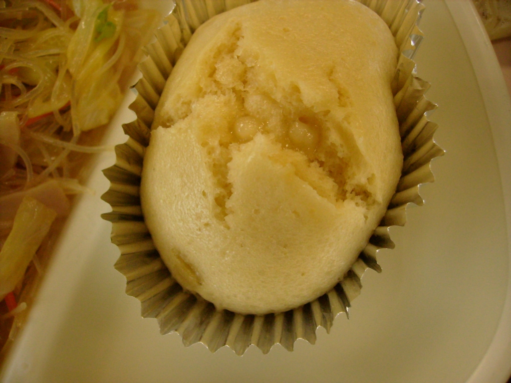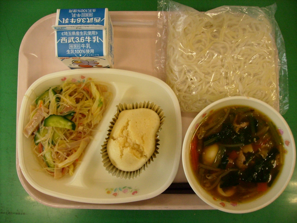 牛乳、広東めん、ホワイト蒸しパン