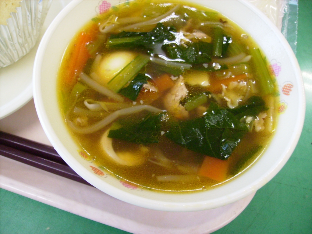 しょうゆ味のスープで、とろみが少しつきました。