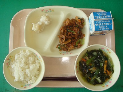 9月2日(金)の給食☆本日の献立☆ ご飯、ジャーチャン豆腐、エビシュウマイ、中華スープ 今日は中華メニューでした。ジャーチャン豆腐が、甘辛な味付けでご飯のおかずにちょうどよかったです。暑さで食欲がないときにぴったりです。 |