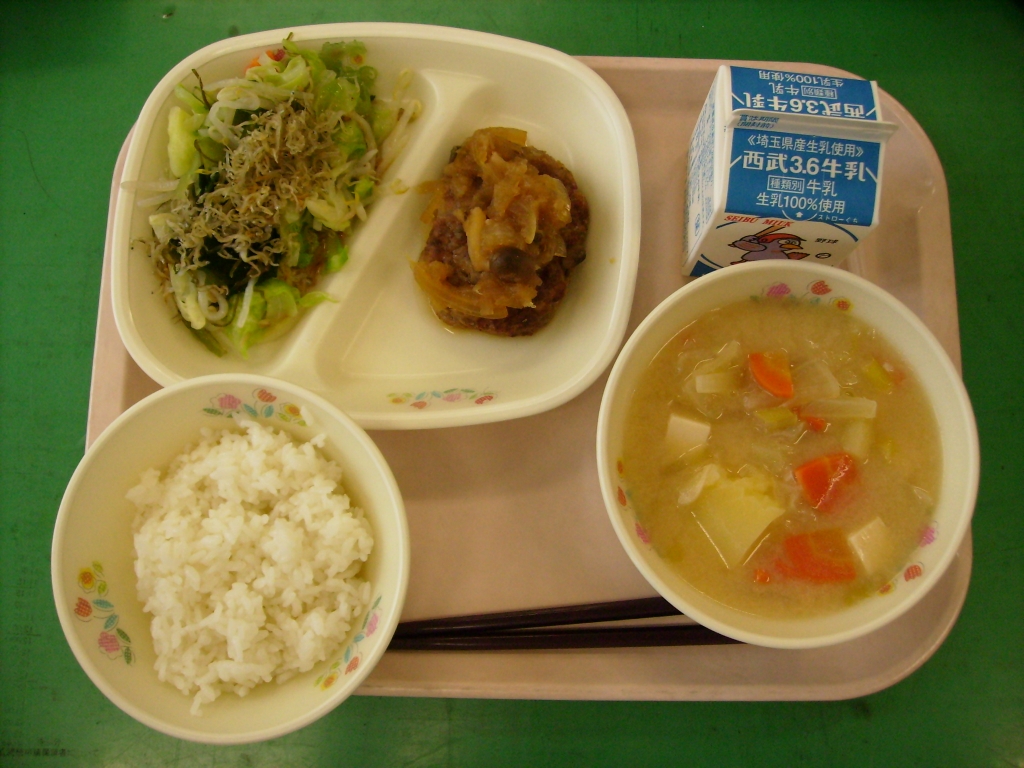 ☆今日の献立☆  牛乳、ごはん、和風ハンバーグ スタミナスープ、海草サラダ 今日は、大根おろし、玉ねぎ、シメジをしょうゆ、砂糖、みりんで 味付けした和風ソースをハンバーグにたっぷりかけました。 ソースの味がハンバーグにしみていて、ご飯が進みました。 スタミナスープには、味噌ベースの味付けで 牛乳、にんにくが入り、最後にバターを入れて コクを出しました。海草サラダは、もやしバージョンでした。 |