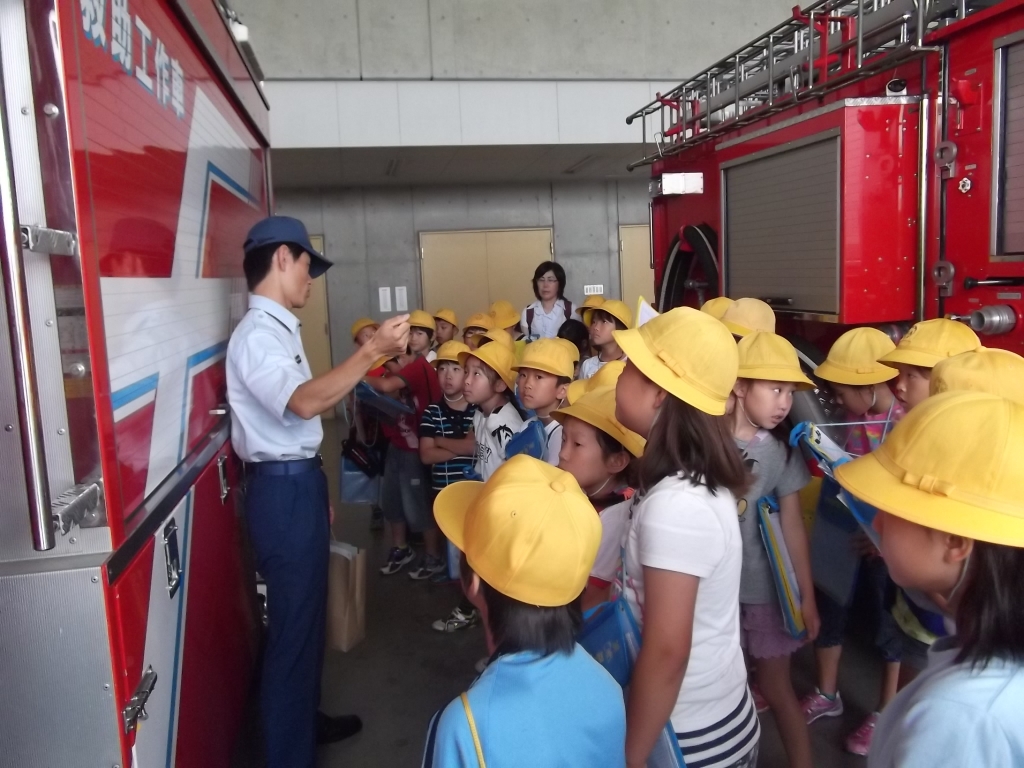 消防車や消防本部の設備について説明していただいたりしました。