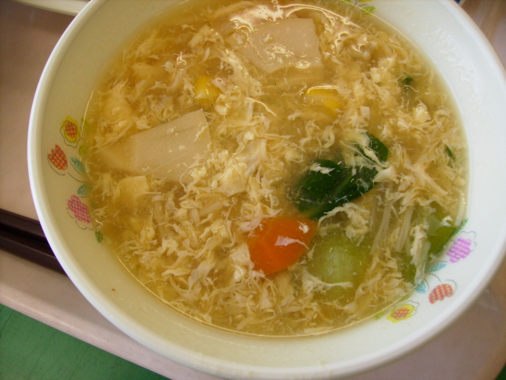 今日の「春のたまごスープ」は新メニューでした。 春を代表する食材である、たけのこ、あさりが入りました。 中華風の味付けで、たまごの甘みが良く合いおいしかったです。 色もきれいな、春らしい色に仕上がりました。