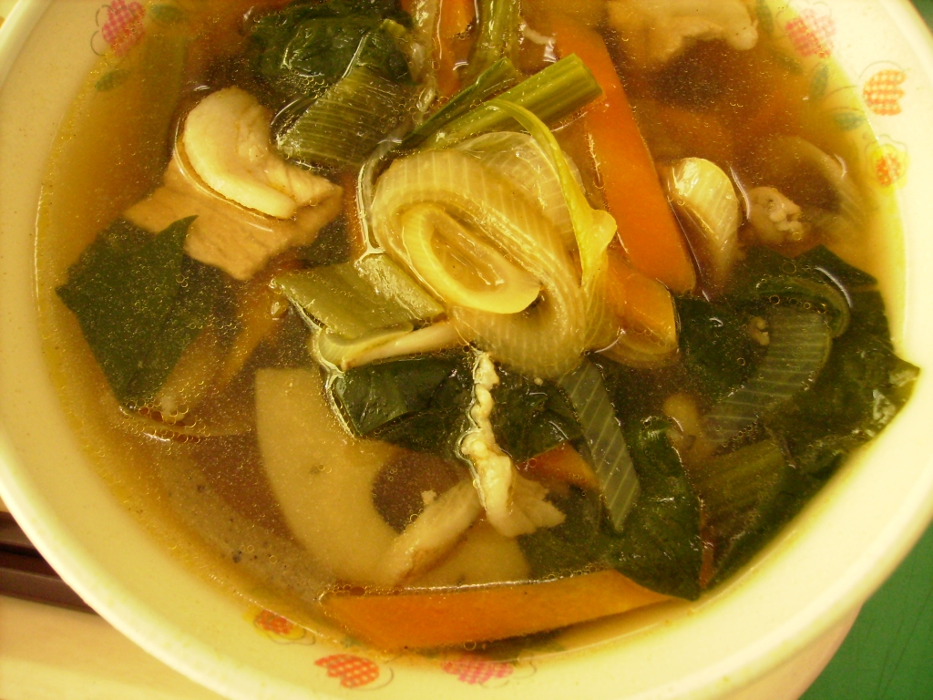 きんぴらうどんは、ごぼう、れんこん、にんじん、シメジ こんにゃく、ねぎ、豚肉をごま油で炒めて、だし汁を 入れて味付けをして、最後にほうれん草を入れました。 野菜の甘みが出ていておいしかったです。