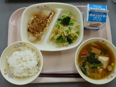10月11日(水)の給食☆本日の献立☆ ご飯、白身魚の南蛮漬け、野菜炒め、大根のみそ汁 事務主事:白身魚の南蛮漬け。お魚の身がとても柔らかくて、食べやすかったです。味もしっかりついていてご飯がすすみました。ごちそう様でした。」 |