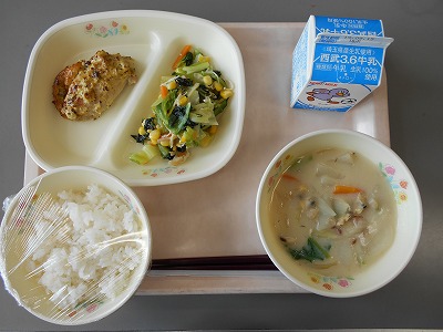 (献立) チキンのつぶマヨカレーやき キャベツのペペロンチーノ風