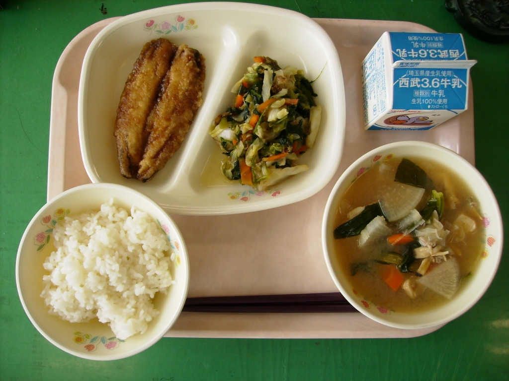 今日の献立  牛乳、ごはん、鰯のかば焼き あさりのみそ汁、煮びたし 今日は、民生児童委員さんたちが来校しました。 給食も試食して頂き、おいしかったとの感想を頂きました。 子どもたちからも、今日の煮びたしはおいしかったなど うれしい感想をもらいました。 かば焼きは甘辛いタレでご飯が進むメニューです。 鰯には小骨がたくさんありますが、片栗粉を付けて 揚げると、気にならずに食べることができます。 鰯にはEPA、DHAなどの必須脂肪酸が含まれています。 DHAは頭が良くなる栄養素と言われています。 お肉からは摂取できないので、魚も積極的に 食事に取り入れたいですね♪ |