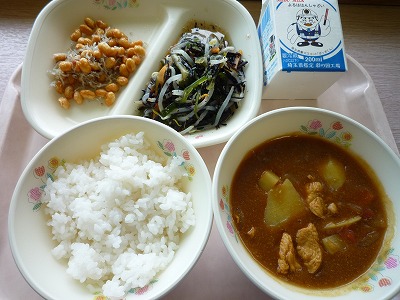 (メニュー) チキンカレー 大豆のカリカリ揚げ 海藻もやしサラダ 牛乳 (食レポ) サラダは、ねばねば感が半端ないです。 カリカリ揚げは、ちりめんじゃこがたっぷりで、どちらも体にとても 良さそうです。チキンカレーには、トマトが入っています。 |