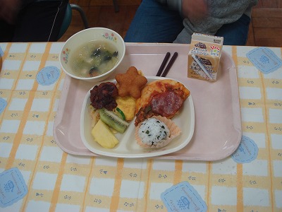 6年生:バイキング給食今日は6年生が卒業記念のバイキング給食でした。そのため、通常メニューの写真はありません。献立名のみ掲載します。 ハチミツパン、星形コロッケ、三色サラダ、豆腐と野菜のコンソメスープバイキング給食の一例*6年生になれば、バイキング給食があります! |