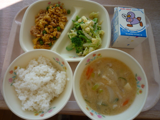 (献立) 三食そぼろごはん スタミナスープ チーズサラダ 牛乳 (コメント) 担任時、そぼろご飯の時は、ビニールの手袋をはめ、 そぼろをご飯に混ぜ合わせていました。 掌が赤くなるほど熱かったのを覚えています。 今日のサラダには、サイコロ状のチーズが入っています。 |